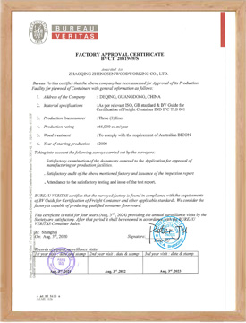 工廠(chǎng)和產(chǎn)品都通過(guò)法國(guó)“BV”認(rèn)證,“FSC”認(rèn)證和中國(guó)“CCS”認(rèn)證