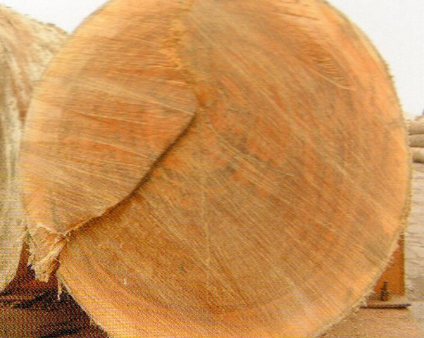 心邊材區(qū)別明顯。心材淺褐色或金黃褐色;邊材灰白色至灰黃色,寬5~8cm,具黑色同心圓狀條紋。生長(zhǎng)輪不明顯。