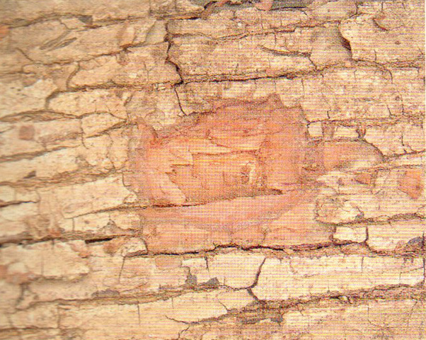 厚1.0~3.0cm,質(zhì)略硬,不易剝離。外皮灰白色至灰褐色;具規(guī)則的縱裂,呈小片狀脫落。內(nèi)皮淺紫紅色: 韌皮纖維略發(fā)達(dá)。